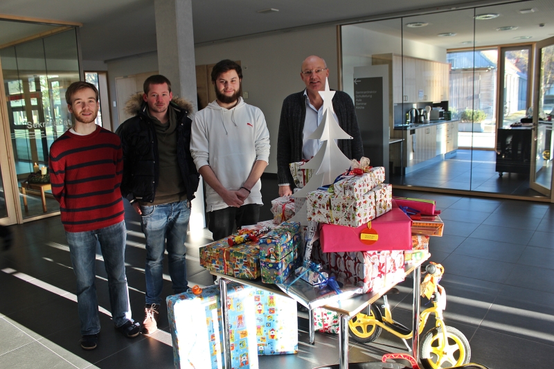 Wie man sieht, haben sich die Schülerinnen und Schüler, die Mitarbeiterinnen und Mitarbeiter rege an unserer Weihnachtaktion zugunsten befürftiger Kinder in der Region beteiligt, so dass viele Geschenkpakete zusammenkamen. (Foto: Westermayr)