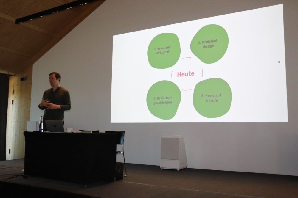 Herr Christian Schlimok von der Berliner Firma Novamondo erhellte die Schüler und Schülerinnen mit vielen, spannenden Gedanken zu und neuen Ansätzen in der Produktgestaltung, Wiederaufbereitung und zu Kreisläufen im Design und der Architektur. Der Berater für nachhaltige Markenentwicklung beleuchtete Themen wie die “fast fashion”, das “Cradle to Cradle”-Prinzip oder die künstliche Obsolenz von Waren.