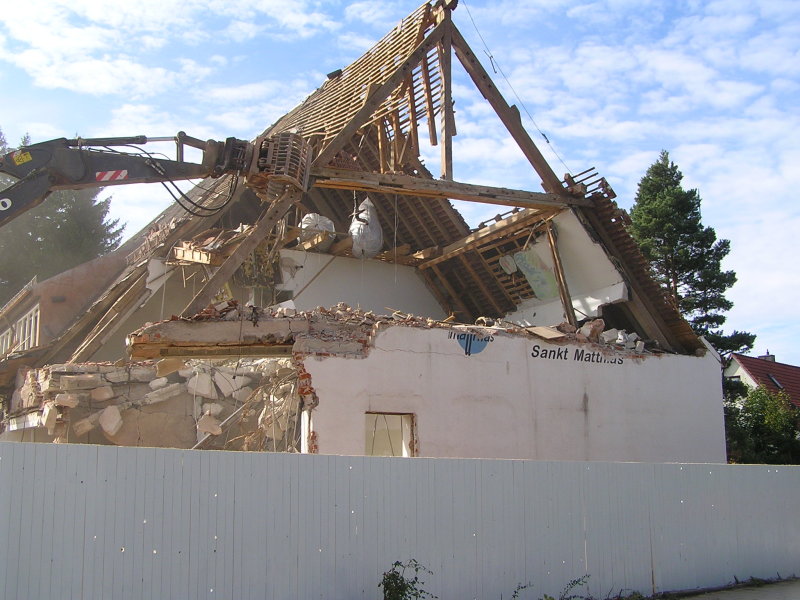 14-08-Abriss-Schule Published 26. Oktober 2017 at 800 × 600 in 14-08-Abriss-Schule ← Previous Next → August 2014: Die alte Schule wird abgerissen. Der Bagger macht auch nicht vor dem Schullogo Halt, das noch Hermann Reichenbach im Jahre 2006 aufgetragen hat. (Foto: Birner)